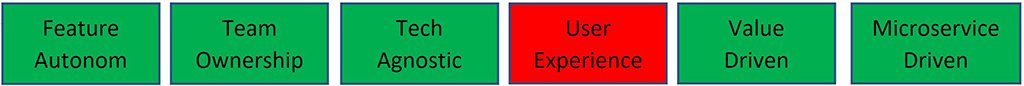 Există mai multe principii pe care echipele independente de dezvoltare de UI trebuie să le îndeplinească. Două exemple sunt următoarele: