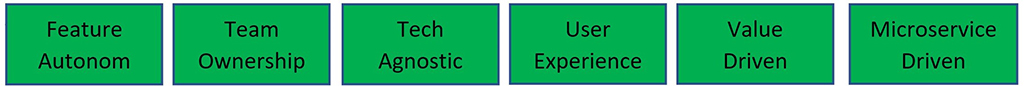 Team Ownership: aplicație independentă cu code repository propriu, iar echipa deține controlul total al codebase-ului (pe verticală, inclusiv partea microservicii și repository) .