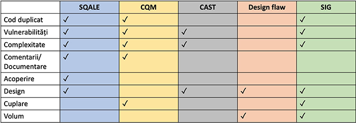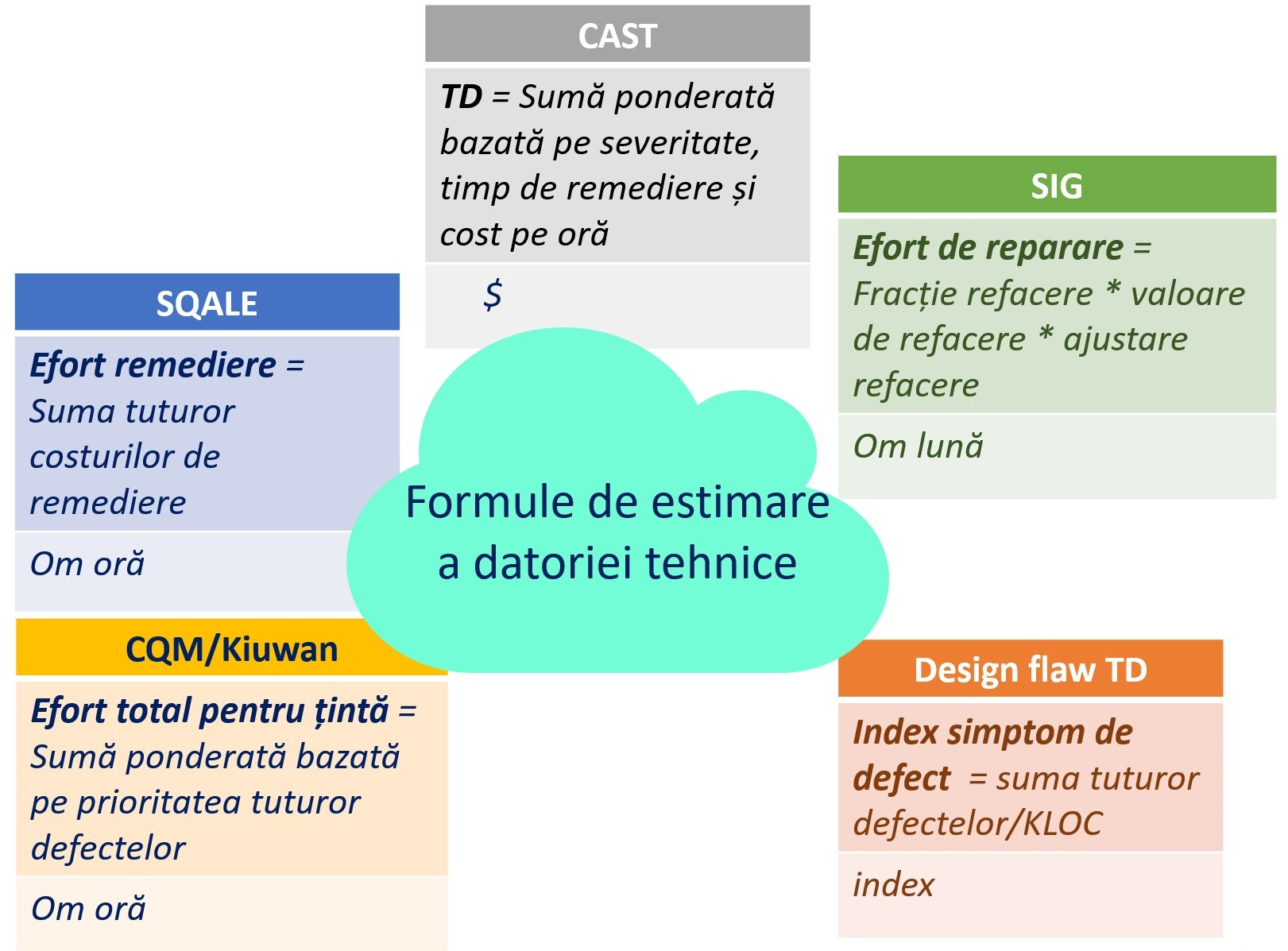 Tabel 2: Aspectele considerate în formulele pentru estimarea datorie tehnice