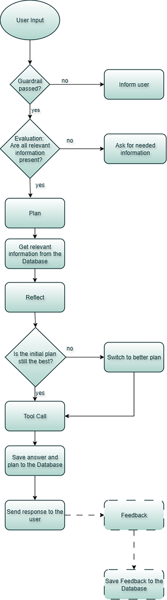 This feedback-enhanced memory architecture allows the agent not just to recall, but to learn or adapt its behavior from past decisions. By evaluating the outcomes and user feedback of previous interactions, the system can better inform future planning and so, bringing the agent closer to adaptive, experience-based decision-making.