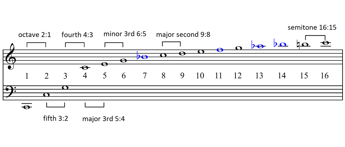 Un interval muzical nu este altceva decât raportul dintre două frecvențe, asemenea unui diferențial de voltaj în electronică. Așa cum în procesarea de semnal compari două unde sinusoidale prin raportul frecvențelor lor, în muzică acest raport determină cum percepem distanța de înălțime dintre două sunete. Dublarea frecvenței (2:1) produce o octavă, multiplicarea cu 3/2 produce o cvintă perfectă ș.a.m.d. Deoarece percepția înălțimii este logaritmică, rapoarte egale, nu diferențe egale, dau naștere unor trepte percepute ca echidistante.