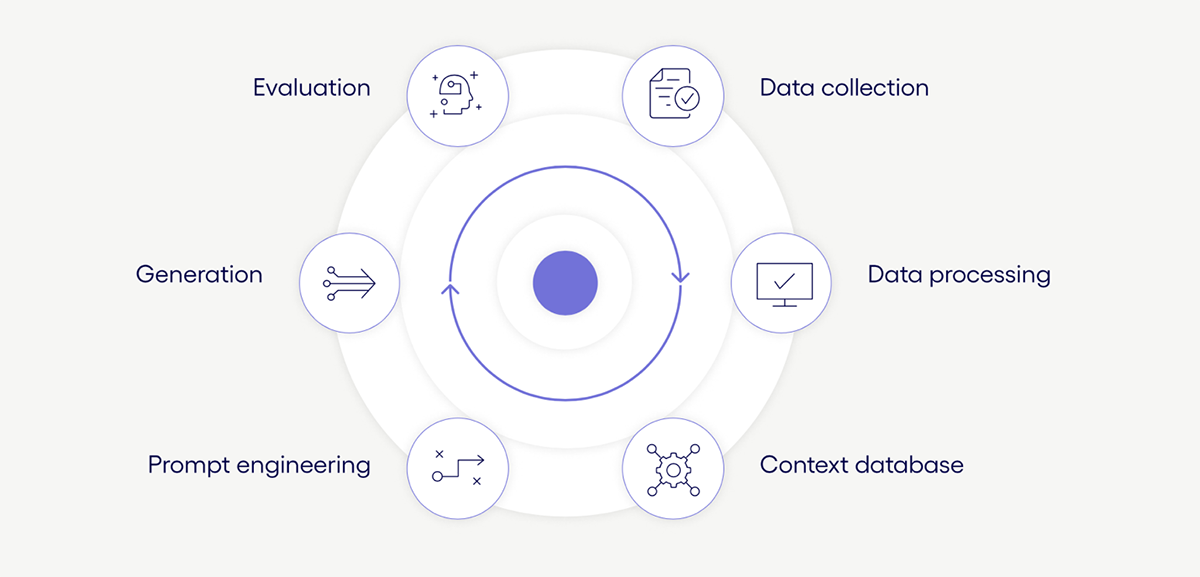 Evaluarea modelelor LLM evoluează spre o integrare completă în ciclul de viață al dezvoltării AI. Acest lucru presupune automatizarea etapelor de evaluare, îmbunătățirea seturilor de date de referință și dezvoltarea unor modele specializate pentru evaluare. De asemenea, feedbackul utilizatorilor în timp real este integrat pentru a rafina constant performanța, de la colectarea și procesarea datelor, la ingineria prompturilor, generare și evaluare.