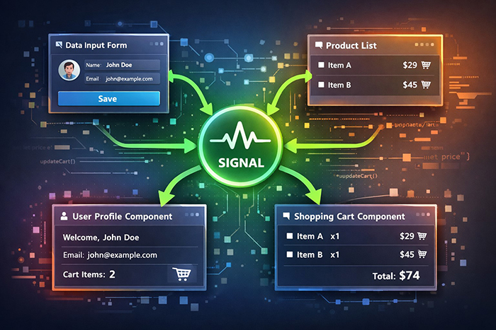 Soluția modernă poate fi signals. Așa cum AJAX a înlocuit full-page reloadul cu update-uri parțiale, fine-grained reactivity înlocuiește component-level re-rendering cu update-uri chirurgicale la nivel de nod DOM.