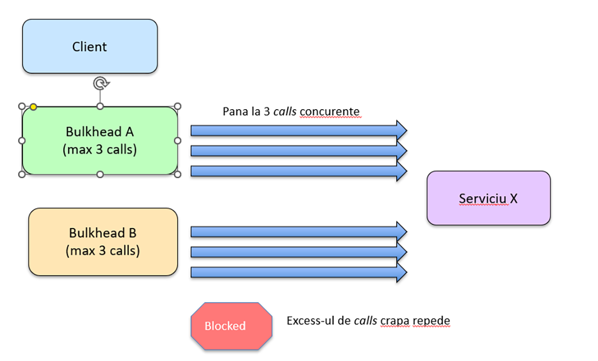 În sistemele distribuite, un bulkhead limitează câte apeluri simultane pot fi făcute către o anumită dependență. Dacă un serviciu devine lent sau supraîncărcat, nu se dorește ca toate threadurile tale să rămână blocate așteptând după el.