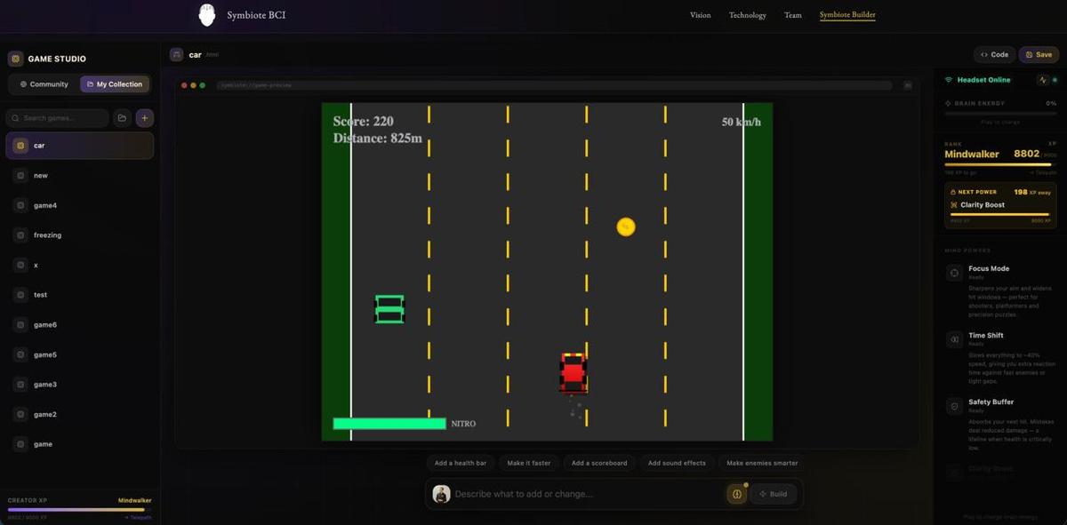 Împreună cu echipa Symbiote BCI, am dezvoltat un ecosistem educațional care abordează limitările metodelor tradiționale de predare. În cadrul unor workshopuri aplicate, elevii implementează algoritmi de inteligență artificială pentru a construi jocuri de la zero, ulterior interfațate cu sisteme de neurotehnologie pe care le pot controla cu gândul.
